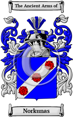 The surname Norkunas was first found in West Prussia and Pomerelia, where the name emerged in mediaeval times as one of the notable families in the western region. From the 13th century onwards the surname was identified with the great social and economic evolution which made this territory a landmark contributor to the development of the nation.