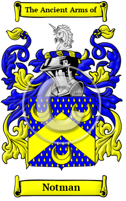 | Notman History, Family Crest & Coats of Arms Etymology of NotmanWhat does the name Notman mean? The Anglo-Saxon name Notman comes from when the family resided at the knot, the summit of a rocky hill, from the residence near that place. Early Origins of the Notman familyThe surname Notman was first found in Derbyshire where traditionally the name was descended from the Scandinavian King Canute, or Cnut. Drayton sings "The Knot that called was Canutus, bird of old, of that great King of Danes, his name that still doth hold, his appetite to please that far and near was sought, for his, as some have said, from Denmark hither brought." Cnut or Canute the Great (994?-1035), and by Scandinavian writers the Mighty and the Old, was king of the English, Danes, and Norwegians, and was the younger son of Sweyn, king of Denmark. 1 Early feudal rolls provided the king of the time a method of cataloguing holdings for taxation, but today they provide a glimpse into the wide surname spellings in use at that time. Randulfus filius Cnut was listed in the Pipe Rolls for Devon in 1191; Knot pater Alani and Alanus filius Knod were both listed in the Assize Rolls for Lincolnshire in 1202; Radulfus filius Knut was found in the Pipe Rolls for Yorkshire in 1203; Walter and Robert Cnot were in the Pipe Rolls for Suffolk in 1165 and were later Knights Templar in 1185 ; William Cnotte was found in the Curia Regis Rolls for Bedfordshire in 1206; William, John Knotte in the Assize Rolls for Worcestershire in 1221; and Stephen le Knotte was listed in the Subsidy Rolls for Sussex in 1296. 2 The Hundredorum Rolls of 1273 had two listings for the family: Richard Knotte, London; and Peter Cnotte, Salop (Shropshire) while the Yorkshire Poll Tax Rolls of 1379 had the following: Robertus Knotte; Ricardus Notte; Isabella Notte; and Thomas Knot. 3 Up north in Scotland, "A ship of Knut the wealthy, citizen of Berwick, was carried off by Erlind, earl of Orkney, in 1156 (Orkneyinga Saga, Edinburgh, 1873, p. 161.) Hugo Cnot granted an annual-rent of two shillings to the Priory of Inchcolm, c. 1210-1229. The name also occurs in records of Coldingham Priory as Cnoyt. Richard Knut witnessed resignation of the lands of Langholm and Brakanwra, 1281. Adum Knout and John Knout were burgesses of Roxburgh, 1296, and rendered homage [to King Edward I of England] in that year. " 4 Early History of the Notman familyThis web page shows only a small excerpt of our Notman research. Another 116 words (8 lines of text) covering the years 1086, 1582, 1606, 1621, 1622, 1626, 1629, 1632, 1633, 1641, 1656, 1681, 1708, 1724, 1729, 1730, 1734, 1763, 1777 and 1811 are included under the topic Early Notman History in all our PDF Extended History products and printed products wherever possible. Notman Spelling VariationsThe English language only became standardized in the last few centuries; therefore,spelling variations are common among early Anglo-Saxon names. As the form of the English language changed, even the spelling of literate people's names evolved. Notman has been recorded under many different variations, including Cnot, Cnotte, Canute, Cnut, Knot, Knout, Knotte, Knott and many more. Early Notables of the Notman familyWilliam Knott of Great Gonerby, Lincolnshire. Edward Knott (1582-1656), born with the name of Matthew Wilson, was an English Jesuit controversialist, twice provincial of the Society of Jesus in England. He was born at Catchburn, a township in the parish of Morpeth, Northumberland. During 1626 he was a missioner in the Suffolk district. He was apprehended in 1629, and was committed to the Clink prison in Southwark, but at the instance of the queen he was released and banished in February... Another 81 words (6 lines of text) are included under the topic Early Notman Notables in all our PDF Extended History products and printed products wherever possible. Migration of the Notman family to IrelandSome of the Notman family moved to Ireland, but this topic is not covered in this excerpt. Another 148 words (11 lines of text) about their life in Ireland is included in all our PDF Extended History products and printed products wherever possible.