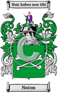 | Nuton History, Family Crest & Coats of Arms Etymology of NutonWhat does the name Nuton mean? The name Nuton reached English shores for the first time with the ancestors of the Nuton family as they migrated following the Norman Conquest of 1066. The Nuton family lived in Cheshire, at Newton. The surname Nuton was originally derived from the Old English words, neowe, meaning new, and tun, meaning enclosure or settlement. 1 Early Origins of the Nuton familyThe surname Nuton was first found in the Domesday Book of 1086 where Alward de Niwetuna was recorded as holding lands in Norfolk at that time. 2 Years later, Robert de Neweton was listed in the Pipe Rolls of 1190 for Yorkshire and Stephen de Neuton was found in the Subsidy Rolls for Worcestershire c. 1280. 3 Other early rolls entries include: Gannora de Neutone, Staffordshire; Ralph de Neatone, Huntingdonshire; and Alan de Neuton, Lincolnshire, all listed in the Hundredorum Rolls of 1273. The Yorkshire Poll Tax Rolls of 1379 include entries for: Willelmus de Neweton; and Johannes de Neuton. 4 While there are many parishes so named, one source claim the family is "from Newton in Haddingtonshire. The family were seated there in 1377; Sir Isaac Newton derived his descent from them." 5 Much of the family was found in Cheshire at Wilmslow, a parish, in the union of Altrincham, hundred of Macclesfield. "In the north chapel [of Wilmslow church] are two altar-tombs sunk in the wall, on which are figures representing the Newtons of Newton and Pownall." 6 We must take a moment to explore the hamlet of Woolsthorpe in Lincolnshire. "This is an ancient hamlet, consisting of a few farmhouses and thatched cottages, with the old manor-house, in which the immortal Sir Isaac Newton was born, on Christmas-day, 1642. His father, John Newton, Esq., was lord of the manor. Great care is taken for the preservation of the house; and when it was repaired, in 1798, a tablet of white marble, commemorating the philosopher's birth, was put up in the chamber where the event took place." 6 Scotland was home to another branch of the family: "The first three persons here named derived their name from the old parish of Newton in Midlothian. James de Neutone and Huwe de Neutone of Edinberghshire (Edinburghshire) rendered homage in 1296. Alexander de Newtoun de eodem was one of assize on the perambulation of the bounds of Gladmor, 1430." 7 Early History of the Nuton familyThis web page shows only a small excerpt of our Nuton research. Another 225 words (16 lines of text) covering the years 1166, 1374, 1446, 1463, 1479, 1543, 1579, 1626, 1642, 1660, 1661, 1699 and 1727 are included under the topic Early Nuton History in all our PDF Extended History products and printed products wherever possible. Nuton Spelling VariationsAnglo-Norman names tend to be marked by an enormous number of spelling variations. This is largely due to the fact that Old and Middle English lacked any spelling rules when Norman French was introduced in the 11th century. The languages of the English courts at that time were French and Latin. These various languages mixed quite freely in the evolving social milieu. The final element of this mix is that medieval scribes spelled words according to their sounds rather than any definite rules, so a name was often spelled in as many different ways as the number of documents it appeared in. The name was spelled Newton, Newdon and others. Early Notables of the Nuton familySir Isaac Newton (1642-1727), the English polymath active as a mathematician, physicist, astronomer, alchemist, theologian, and author. He is probably best remembered for his Principia, where Newton formulated the laws of motion and universal gravitation.