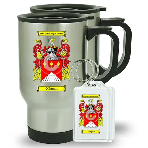 Pair of Travel Mugs and pair of Keychains