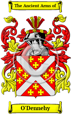 The surname O'Dennehy was first found in Cork (Irish: Corcaigh) the ancient Kingdom of Deis Muin (Desmond), located on the southwest coast of Ireland in the province of Munster, and Kerry where they held a family seat. The first recorded instance of the name is of Donall O'Denaghie of Cloghlea, County Cork, a vestarius (keeper of the vestry) in 1585. According to Irish lore, bearers of this name were traditionally descended from Maoin, brother of Muircaertach Mor MacEarca, King of Ireland. Many Irish sept (clann) names were intermixed and family groupings became almost indistinguishable. Bearers of this name often changed Danagher to Dennehy, and Dennehy to Denny.