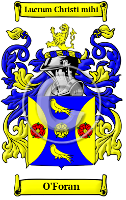 The surname O'Foran was first found in Connacht (Irish: Connachta, (land of the) descendants of Conn), where they were firstly known as Macgiollarnath or Mac Gilla na Naomh, meaning 'son of the devotee of the saints', which, through mistranslation and time emerged as an off-shoot of the main Clan through a chieftain O'Fuarthain or O'Fuarain, which, in English, became O'Foran.