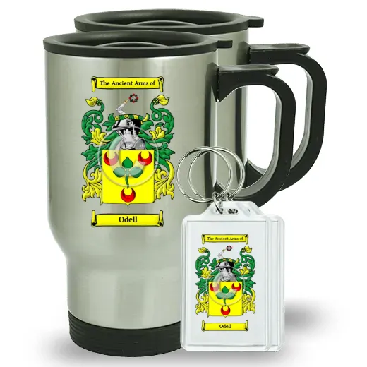 Pair of Travel Mugs and pair of Keychains