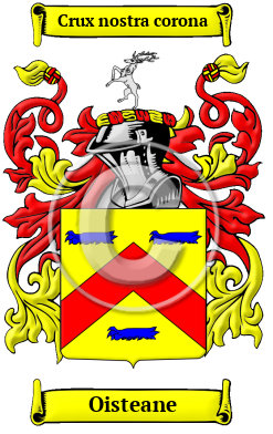 | Oisteane History, Family Crest & Coats of Arms Etymology of OisteaneWhat does the name Oisteane mean? The roots of the Oisteane family stretch back to the Strathclyde people of the Scottish/English Borderlands, who were the first to use this surname. It is derived from the Gaelic Mac Austain meaning "son of Austin." Early Origins of the Oisteane familyThe surname Oisteane was first found in Scotland where "the Austins appear first on record as allies and supporters of the Keiths. The name was variously spelt, though in ancient records it was generally begun with Ou or Ow. Of curious interest as showing an early connection between the families is the occurrence in 1587 of the name of Alexander Ousteane, burgess of Edinburgh, as one of the cautioners for George Keith, Earl Marshall, in an action raised against him, by Margaret Erskine, Lady Pitcarie. In the same year Alexander Oisteane, no doubt the same person, was a parliamentary representative of the Burgh of Edinburgh. In 1589 Walter Oustene, a tenant in Lochquhan (a possession of the Keith family), was one of the subscribers to a Bond of Caution imposed on a number of the landed men in the shires of Aberdeen and Kincardine, binding them to keep the peace in the struggles with the Catholic party beaded by Huntly" (D. W. Stewart, Old and rare Scottish tartans). " 1 Early History of the Oisteane familyThis web page shows only a small excerpt of our Oisteane research. Another 151 words (11 lines of text) covering the years 1376, 1448, 1503, 1566, 1574, 1583, 1584, 1593, 1594, 1676, 1681, 1699, 1755, 1800, 1820 and 1890 are included under the topic Early Oisteane History in all our PDF Extended History products and printed products wherever possible. Oisteane Spelling VariationsBefore the printing press standardized spelling in the last few hundred years, no general rules existed in the English language. Spelling variations in Scottish names from the Middle Ages are common even within a single document. Oisteane has been spelled Austin, Austins, Austen, Austeane, Ostian, Ousteane, Owstyne, Ostiane and many more. Early Notables of the Oisteane familyJohn Austin (fl. 1820), a Scotch inventor and native of Craigton. He published at Glasgow, in or about 1800, a system of 'Stenography which may be learned in an hour,' on a single folio engraved sheet, price 2s. 6d. A note at the end announces the publication of a complete system by the same author, price one guinea, but this does not appear to... Another 64 words (5 lines of text) are included under the topic Early Oisteane Notables in all our PDF Extended History products and printed products wherever possible. Migration of the Oisteane family to IrelandSome of the Oisteane family moved to Ireland, but this topic is not covered in this excerpt. Another 58 words (4 lines of text) about their life in Ireland is included in all our PDF Extended History products and printed products wherever possible. Migration of the Oisteane familyFor Scottish immigrants, the great expense of travel to North America did not seem such a problem in those unstable times. Acres of land awaited them and many got the chance to fight for their freedom in the American War of Independence. These Scots and their ancestors went on to play important roles in the forging of the great nations of the United States and Canada. Among them: David Austin, an early saddle-bag preacher who was ordained in the Presbytery of New York in 1788; David arrived in New York by way of Antrim; John Austin, the great grandfather of Rutherford Hayes, known as the ".