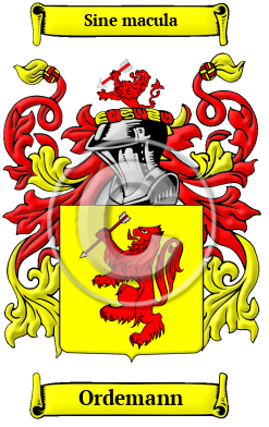 The surname Ordemann was first found in Wertheim, Main, where Orto of Mendfeld is recorded to have been living in 1260. Another early instance of the name dates back to 1271, when Thietrich an dem Orte was recorded as being a resident of Basel.