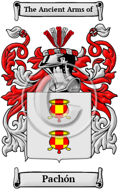| Pachón History, Family Crest & Coats of Arms Etymology of PachónWhat does the name Pachón mean? The prestigious surname Pachón originated in Spain, a country which has figured prominently in world affairs for hundreds of years. The name Pachón became a hereditary surname in Spain after it was brought from Portugal. This ancient surname dates back to Roman times and in 92 BC, a Roman general named Vivio Pacieco, who descended from Lucio Viminio Pacieco, served Julius Caesar in Andalucía. One of Vivio's descendants, Don Diego López Pacheco, who was also known as "el Grande" and was Ricohombre of Portugal, was the first bearer of this name in Spain. Early Origins of the Pachón familyThe surname Pachón was first found in Castile, prominent among the Christian kingdoms of medieval Spain. Early History of the Pachón familyThis web page shows only a small excerpt of our Pachón research. Another 83 words (6 lines of text) covering the years 1380, 1532, 1563, 1564, 1574, 1599, 1606, 1607, 1610, 1615, 1640, 1642, 1644, 1649, 1653, 1663 and 1718 are included under the topic Early Pachón History in all our PDF Extended History products and printed products wherever possible. Pachón Spelling VariationsSpelling variations of this family name include: Pacheco, Pachico, Pachón, Pachon and others. Early Notables of the Pachón familywere Don Francisco Pacheco, 4th Duke of Escalona (1532-1574); Don Juan Fernández Pacheco, (1563-1615), 5th Duke of Escalona, 5th Marquis of Villena and 5th Count of Xiquena, a Spanish nobleman, Viceroy of Sicily (1607-1610); Don Diego Roque López Pacheco Cabrera y Bobadilla, 7th Duke of Escalona, (1599-1653), a Spanish nobleman and Viceroy of New Spain (1640-1642); Francisco... Another 56 words (4 lines of text) are included under the topic Early Pachón Notables in all our PDF Extended History products and printed products wherever possible.
