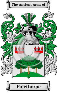 England Early Origins of the Palethorpe familyThe surname Palethorpe was first found in Nottinghamshire at Perlethorpe, 1 a small village and former civil parish, now in the parish of Perlethorpe cum Budby, in the Newark and Sherwood district. This village name has gone through a variety of spellings including Pailthorpe, 2 Palethorpe, 3 Pallathorp, 4 but all agree the village dates back to at least the Domesday Book of 1086, where the surname is generally considered to be descended from the tenant of the village and lands of Perlethorpe, held by Richard from Roger de Bully, a Norman noble. 5 To confuse matters more, the Pallathorp spelling is also a location name in Yorkshire. 4 Early History of the Palethorpe familyThis web page shows only a small excerpt of our Palethorpe research. Another 86 words (6 lines of text) covering the years 1753 and 1763 are included under the topic Early Palethorpe History in all our PDF Extended History products and printed products wherever possible. Palethorpe Spelling VariationsA multitude of spelling variations characterize Norman surnames. Many variations occurred because Old and Middle English lacked any definite spelling rules. The introduction of Norman French to England also had a pronounced effect, as did the court languages of Latin and French. Therefore, one person was often referred to by several different spellings in a single lifetime. The various spellings include Palethorpe, Pailthorp, Pailthorpe, Palethorp, Perlthorp, Perlthorpe, Pallthorp and many more. Early Notables of the Palethorpe familyMore information is included under the topic Early Palethorpe Notables in all our PDF Extended History products and printed products wherever possible.