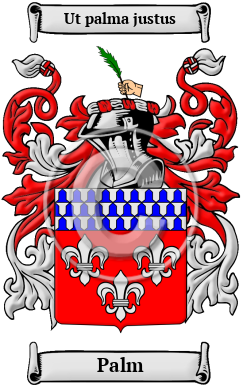 | Palm History, Family Crest & Coats of Arms Etymology of PalmWhat does the name Palm mean? The ancestors of the bearers of the Palm family name are thought have lived in ancient Anglo-Saxon England. They were first found in Palmes, Languedoc, Normandy. 1 Early Origins of the Palm familyThe surname Palm was first found in Yorkshire where "there appears no reason to doubt the antiquity of this family, said to be descended from Manfred Palmes, who lived in the reign of Stephen, [1135-1154] and seated at Naburn, co York, since the year 1226 by a match with the heiress of Watterville." 2 3 The family held the estates since these early times to at least the late 19th century when " Naburn Hall was the seat of George Palmes, Esq." 4 Early History of the Palm familyThis web page shows only a small excerpt of our Palm research. Another 159 words (11 lines of text) covering the years 1140, 1394, 1415, 1420, 1455, 1467, 1487, 1499, 1510, 1519, 1554, 1580, 1582, 1600, 1608, 1613, 1614, 1626, 1640, 1642, 1643, 1653, 1654 and 1719 are included under the topic Early Palm History in all our PDF Extended History products and printed products wherever possible. Palm Spelling VariationsUntil quite recently, the English language has lacked a definite system of spelling rules. Consequently, Anglo-Saxon surnames are characterized by a multitude of spelling variations. Changes in Anglo-Saxon names were influenced by the evolution of the English language, as it incorporated elements of French, Latin, and other languages. Although Medieval scribes and church officials recorded names as they sounded, so it is common to find one person referred to by several different spellings of his surname, even the most literate people varied the spelling of their own names. Variations of the name Palm include Palmes, Palms, Palm, Parmes, Parms, Parmes, Parm and others. Early Notables of the Palm family- Brian Palmes (before 1467-1519), an English landowner, justice of the assize and politician who sat in the House of Commons. He was the son eldest son and heir of William Palmes of Naburn and Eleanor...