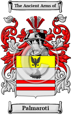 | Palmaroti History, Family Crest & Coats of Arms Etymology of PalmarotiWhat does the name Palmaroti mean? Venice, one of the oldest and most beautiful regions of Italy, is the esteemed birthplace of numerous prominent families, and of a family that bears the surname Palmaroti. Although people were originally known only by a single name, it became necessary for them to adopt a second name to identify themselves, as populations grew and travel became more frequent. The process of adopting fixed hereditary surnames was not complete until the modern era, but the use of hereditary family names in Italy began in the 10th and 11th centuries. Palmaroti was a surname derived from an occupation. Occupational surnames, which are less common than other types of surnames in Italy, date back to the feudal era. The surname Palmaroti is an occupational name for a person who carries palm branches in processions. The surname Palmaroti is a common occupational name for a pilgrim or cleric who frequently a carried a palm branch. The surname Palmaroti is derived from the Old French word "palmier," which meant "cleric" in Medieval times. Early Origins of the Palmaroti familyThe surname Palmaroti was first found in Piedmont, Umbria, Pisa, Bologna, Florence, Naples, and Siena. one of the first on record was Benedetto Palmieri, a Norman Baron who helped conquest Sicily with his 80 knights. After the victorious battle, he received the castle of Naro and the territories of Canicatti and Ravanusa. Early History of the Palmaroti familyThis web page shows only a small excerpt of our Palmaroti research. The years 1183, 1371, 1393 and 1475 are included under the topic Early Palmaroti History in all our PDF Extended History products and printed products wherever possible. Palmaroti Spelling VariationsThere are many variations of most of those Italian names that originated in the medieval era. Some of these come from regional differences, like the tradition of ending northern names in "o" and southern names in "i". Others come from inaccuracies in the recording process, which were extremely common in the eras before dictionaries standardized spelling. Some of the spelling variations of Palmaroti are Palmieri, Palmiero, Palmeri, Palmerio, Palmerini, Palmarini, Palmarino, Palmarìn and many more. Early Notables of the Palmaroti familyRiccardo Palmieri, elected Grand Chancellor of the Two Sicilies, and Bishop of Siracusa and Archbishop of Messina in 1183. Andrea-Matteo Palmieri was Archbishop of Acerenza and of Matera, and eventually became Cardinal; of the same family were Benedetto Palmieri, Archbishop of Salerno, and Leonardo Palmieri, Bishop of Molfetta in 1475. Fulco Palmeri was Baron of Naro and became a priest in 1371, and Rodorico Palmieri overtook these positions... Another 68 words (5 lines of text) are included under the topic Early Palmaroti Notables in all our PDF Extended History products and printed products wherever possible. Migration of the Palmaroti familyAn inquiry into the early roots of North American families reveals a number of immigrants bearing the name Palmaroti or a variant listed above: Agostino Palmieri, aged 7, who arrived at Ellis Island from Faicchio, Italy, in 1910; Alberto Palmieri, aged 43, who arrived at Ellis Island from Faicchio, Italy, in 1920.