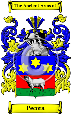 | Pecora History, Family Crest & Coats of Arms Etymology of PecoraWhat does the name Pecora mean? From the ancient and picturesque Italian region of Venice emerged a variety of distinguished names, including the notable surname Pecora. Although people were originally known only by a single name, it became necessary for people to adopt a second name to identify themselves as populations grew and travel became more frequent. The process of adopting fixed hereditary surnames was not complete until the modern era, but the use of hereditary family names in Italy began in the 10th and 11th centuries. Italian hereditary surnames were developed according to fairly general principles and they are characterized by a profusion of derivatives coined from given names. Although the most traditional type of family name found in the region of Venice is the patronymic surname, which is derived from the father's given name, local surnames are also found. Local names, which are the least frequent of the major types of surnames found in Italy, are derived from a place-name where the original bearer once resided or held land. Often Italian local surnames bore the prefix "di," which signifies emigration from one place to another, but does not necessarily denote nobility. The Pecora family lived in the Pecorara valley, where the Pecora family held vast lands and resided in an elegant feudal manor. Early Origins of the Pecora familyThe surname Pecora was first found in the city of Piacenza, which lies almost on the border between Emilia-Romagna and Lombardy. Records are found with Marco, Guisengo, Albrigono and Vitore Pecoraria in 1160. This family took their name from the Pecorara valley, over which they had some possession. Early History of the Pecora familyThis web page shows only a small excerpt of our Pecora research. The year 1223 is included under the topic Early Pecora History in all our PDF Extended History products and printed products wherever possible. Pecora Spelling VariationsIn comparison with other European surnames, Italian surnames have a surprising number of forms. They reflect the regional variations and the many dialects of the Italian language, each with its own distinctive features. For example, in Northern Italy the typical Italian surname suffix is "i", whereas in Southern Italy it is "o". Additionally, spelling changes frequently occurred because medieval scribes and church officials often spelled names as they sounded rather than according to any specific spelling rules. The spelling variations in the name Pecora include Pecora, Pecori, Peguri, Pecorella, Pecorelli, Pegoretti, Pecorino, Pecorini, Pegorin, Pecorai, Pecoraro, Pecorari, Pecoraria, Pegoraro and many more. Early Notables of the Pecora family- Iacopo del Pecora, a 14th century Tuscan poet who wrote love sonnets and many works with prevalent spiritual themes...