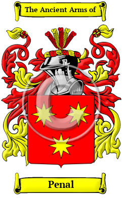 | Penal History, Family Crest & Coats of Arms Etymology of PenalWhat does the name Penal mean? Noble surnames, such as Penal, evoke images of the ancient homeland of the Spanish people. The original bearer of the name Penal, which is a local surname, once lived, held land, or was born in the beautiful region of Spain. In Spain, hereditary surnames were adopted according to fairly general rules and during the late Middle Ages, names that were derived from localities became increasingly widespread. Local names originally denoted the proprietorship of the village or estate. The Penal family originally lived near a cliff or on a rocky patch of land. Ancient records reveal the name Penal is derived from the Spanish word "peña," which means "rock," "crag" or "cliff." Early Origins of the Penal familyThe surname Penal was first found in Castile, in north central Spain. Early History of the Penal familyThis web page shows only a small excerpt of our Penal research. Another 109 words (8 lines of text) covering the year 1338 is included under the topic Early Penal History in all our PDF Extended History products and printed products wherever possible. Penal Spelling VariationsSpelling variations of this family name include: Pena, Peña, Penas, Peñas, de Pena, de Peña, de la Pena, de la Peña, Peñal, Penal, Peñón, Peñon, Penón, Penon, Peño, Peno, Peñuela and many more. Early Notables of the Penal familywere seventeenth century Spanish writer Juan Antonio de la Peña; eighteenth century Colombian military officer Vicente Peña; nineteenth century Colombian poet Belisario Peña; nineteenth century Ecuadoran jurist and diplomat Lorenzo R. Peña; nineteenth century Colombian naturalist Camilo Peña; nineteenth century Paraguayan publisher and politician Manuel Pedro... Another 45 words (3 lines of text) are included under the topic Early Penal Notables in all our PDF Extended History products and printed products wherever possible.