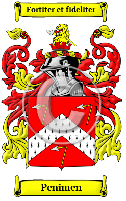 England Etymology of PenimenWhat does the name Penimen mean? The Anglo-Saxon name Penimen comes from when its first bearer worked as a person who worked as the servant for Penn. The name may also be derived from their work as local treasurers or pennymasters who were in charge of the Mint. Early Origins of the Penimen familyThe surname Penimen was first found in Somerset where one of the first records of the name was Simon Penyman in the Assize Rolls of Somerset in 1268. Others include: William Peniman in the Hundredorum Rolls of Cambridge in 1279; and Ralph Paniman or Panyman was listed in the Subsidy Rolls of Sussex in 1296. Early History of the Penimen familyThis web page shows only a small excerpt of our Penimen research. Another 169 words (12 lines of text) covering the years 1569, 1607, 1608, 1628, 1635, 1636, 1642, 1643, 1661, 1664, 1679, 1695, 1702, 1708, 1745, 1750, 1778 and 1890 are included under the topic Early Penimen History in all our PDF Extended History products and printed products wherever possible. Penimen Spelling VariationsUntil quite recently, the English language has lacked a definite system of spelling rules. Consequently, Anglo-Saxon surnames are characterized by a multitude of spelling variations. Changes in Anglo-Saxon names were influenced by the evolution of the English language, as it incorporated elements of French, Latin, and other languages. Although Medieval scribes and church officials recorded names as they sounded, so it is common to find one person referred to by several different spellings of his surname, even the most literate people varied the spelling of their own names. Variations of the name Penimen include Pennyman, Penniman, Penyman and others. Early Notables of the Penimen familyWilliam Pennyman (died 1628), a Clerk in Chancery, he held a third of the Manor of Marske, Yorkshire; and his illegitimate son, Sir William Pennyman (1607-1643), an English landowner, soldier and politician, High Sheriff of Yorkshire (1635-1636), he died of the plague in 1643; Sir James Pennyman, 1st... Another 47 words (3 lines of text) are included under the topic Early Penimen Notables in all our PDF Extended History products and printed products wherever possible. Migration of the Penimen familySearching for a better life, many English families migrated to British colonies. Unfortunately, the majority of them traveled under extremely harsh conditions: overcrowding on the ships caused the majority of the immigrants to arrive diseased, famished, and destitute from the long journey across the ocean. For those families that arrived safely, modest prosperity was attainable, and many went on to make invaluable contributions to the development of the cultures of the new colonies. Research into the origins of individual families in North America revealed records of the immigration of a number of people bearing the name Penimen or a variant listed above: James Penniman, who arrived in Salem, Massachusetts in 1630, with his wife Lydia; as well as Jane Penniman and her husband, who settled in Boston in 1679..
