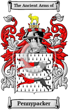 | Pennypacker History, Family Crest & Coats of Arms Etymology of PennypackerWhat does the name Pennypacker mean? The ancient Anglo-Saxon culture of England produced the name of Pennypacker. It was given to a someone as a personal name or literally derived from the coin. It was derived from the Old English "Penig," denoting a coin. The penny was the only unit of coinage in England until the early 14th century, and as such was a coin of considerable value. While the Saxon heritage is the generally accepted origin of this family, another source points to a possible Norman origin as the Magni Rotuli Scaccarii Normanniae lists Serlo Penné in Normandy in 1180-1195. 1 Early Origins of the Pennypacker familyThe surname Pennypacker was first found in Northampton where they held a family seat from very early times, and before the 12th century had become associated with London and had moved north into Scotland. Some of the first records of the family in Scotland include: Johannes Peny, a witness in Elgin in 1343; Mr. John Peny, a Scottish clerk, having a safe conduct in England in 1362; and a later John Peny who had a grant of the fulling mill of Ballernache in Perthshire in 1375. 2 Down in Lancashire, an ancient branch of the family was found. "The neat village of Penny-Bridge, so called perhaps from the British word Pen, 'the head,' was the seat of the family of Penny. The chapel, dedicated to the Blessed Virgin Mary, was built and endowed by William Penny, Esq., was consecrated in 1791." 3 The Hundredorum Rolls of 1273 included various early spellings in many counties: Hurtin Peni in Kent; Alexander Penny in Cambridgeshire; Agatha Peni in Oxfordshire; and Robert Peni in Kent. 4 Kirby's Quest listed Johanne Peny in Somerset, 1 Edward III (during the first year's reign of King Edward III.) 5 "In the reign of Anne, John Penny, Esq., lived at Charlton Musgrove, and at the same time a burgess of Glastonbury bore this name." 6 Early History of the Pennypacker familyThis web page shows only a small excerpt of our Pennypacker research. Another 150 words (11 lines of text) covering the years 1296, 1379, 1433, 1477, 1486, 1487, 1496, 1500, 1520, 1529, 1574, 1589, 1683 and 1890 are included under the topic Early Pennypacker History in all our PDF Extended History products and printed products wherever possible. Pennypacker Spelling VariationsOne relatively recent invention that did much to standardize English spelling was the printing press. However, before its invention even the most literate people recorded their names according to sound rather than spelling. The spelling variations under which the name Pennypacker has appeared include Penny, Penney, Pennie, Penne and others. Early Notables of the Pennypacker familyJohn Penny (d. 1520), English Bishop of Carlisle. He was educated at Lincoln College, Oxford, and at some unknown time became LL.D. of Cambridge. In 1477 he was a canon at the abbey of St. Mary de Pratis at... Another 38 words (3 lines of text) are included under the topic Early Pennypacker Notables in all our PDF Extended History products and printed products wherever possible. Pennypacker Rankingthe United States, the name Pennypacker is the 17,617th most popular surname with an estimated 2,487 people with that name. 7 Migration of the Pennypacker family to IrelandSome of the Pennypacker family moved to Ireland, but this topic is not covered in this excerpt. Another 70 words (5 lines of text) about their life in Ireland is included in all our PDF Extended History products and printed products wherever possible. Migration of the Pennypacker familyAt this time, the shores of the New World beckoned many English families that felt that the social climate in England was oppressive and lacked opportunity for change. Thousands left England at great expense in ships that were overcrowded and full of disease. A great portion of these settlers never survived the journey and even a greater number arrived sick, starving, and without a penny. The survivors, however, were often greeted with greater opportunity than they could have experienced back home. These English settlers made significant contributions to those colonies that would eventually become the United States and Canada. An examination of early immigration records and passenger ship lists revealed that people bearing the name Pennypacker arrived in North America very early: George Penny who settled in Barbados in 1635; Charles Penny settled in Maryland in 1775; P. Penny settled in Boston Massachusetts in 1769; the family also settled in Pennsylvania in the 18th century. In Newfoundland, Benedict Penny inherited property in Carbonear which dated back to 1699.