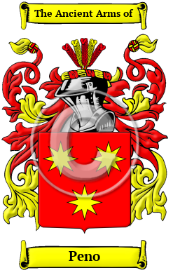 Italy Spain Etymology of PenoWhat does the name Peno mean? Noble surnames, such as Peno, evoke images of the ancient homeland of the Spanish people. The original bearer of the name Peno, which is a local surname, once lived, held land, or was born in the beautiful region of Spain. In Spain, hereditary surnames were adopted according to fairly general rules and during the late Middle Ages, names that were derived from localities became increasingly widespread. Local names originally denoted the proprietorship of the village or estate. The Peno family originally lived near a cliff or on a rocky patch of land. Ancient records reveal the name Peno is derived from the Spanish word "peña," which means "rock," "crag" or "cliff." Early Origins of the Peno familyThe surname Peno was first found in Castile, in north central Spain. Early History of the Peno familyThis web page shows only a small excerpt of our Peno research. Another 109 words (8 lines of text) covering the year 1338 is included under the topic Early Peno History in all our PDF Extended History products and printed products wherever possible. Peno Spelling VariationsSpelling variations of this family name include: Pena, Peña, Penas, Peñas, de Pena, de Peña, de la Pena, de la Peña, Peñal, Penal, Peñón, Peñon, Penón, Penon, Peño, Peno, Peñuela and many more. Early Notables of the Peno familywere seventeenth century Spanish writer Juan Antonio de la Peña; eighteenth century Colombian military officer Vicente Peña; nineteenth century Colombian poet Belisario Peña; nineteenth century Ecuadoran jurist and diplomat Lorenzo R. Peña; nineteenth century Colombian naturalist Camilo Peña; nineteenth century Paraguayan publisher and politician Manuel Pedro... Another 45 words (3 lines of text) are included under the topic Early Peno Notables in all our PDF Extended History products and printed products wherever possible.
