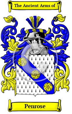 | Penrose History, Family Crest & Coats of Arms Etymology of PenroseWhat does the name Penrose mean? Cornwall in southwestern England provides the original birthplace of the surname Penrose. As populations grew, people began to assume an extra name to avoid confusion and to further identify themselves. Unlike most Celtic peoples, who favored patronymic names, the Cornish predominantly used local surnames. This was due to the heavy political and cultural influence of the English upon the Cornish People at the time that surnames first came into use. Local surnames were derived from where a person lived, held land, or was born. While many Cornish surnames of this sort appear to be topographic surnames, which were given to people who resided near physical features such as hills, streams, churches, or types of trees, many are actually habitation surnames derived from lost or unrecorded place names. The name Penrose history began in the village of Penrose in the county of Cornwall. Early Origins of the Penrose familyThe surname Penrose was first found in Cornwall at Penrose, "a hamlet near the Land's End, possessed by the family in the XV. century, and doubtless much earlier." 1 Penrose is also "a parish, in the division and hundred of Raglan, union and county of Monmouth, Wales." 2 "The manor of Penrose [in the parish of Sithney, Cornwall] was from an early period the property, and its barton the residence, of an ancient family of this name, who are said to have been seated here before the Conquest. The word Penrose signifies the head of the valley, or, the hill of the heath. " 3 "One of the most ancient families of the name of Penrose resided at Penrose, Sithney, in the 15th, 16th, and 17th centuries; members of this family were sheriffs of the county in the 16th century." 4 "The manor of Borthy or Berthy, [in the parish of St. Endoer, Cornwall] to which the parish was partly indebted for its name at the time of the Norman Conquest, was for many years in the family of Penrose." 3 Early History of the Penrose familyThis web page shows only a small excerpt of our Penrose research. Another 71 words (5 lines of text) covering the year 1876 is included under the topic Early Penrose History in all our PDF Extended History products and printed products wherever possible. Penrose Spelling VariationsCornish surnames are characterized by a multitude of spelling variations. The frequent changes in surnames are due to the fact that the Old and Middle English languages lacked definite spelling rules. The official court languages, which were Latin and French, were also influential on the spelling of a surname. Since the spelling of surnames was rarely consistent in medieval times, and scribes and church officials recorded names as they sounded rather than adhering to any specific spelling rules, it was common to find the same individual referred to with different spellings of their surname in the ancient chronicles. Moreover, a large number of foreign names were brought into England, which accelerated and accentuated the alterations to the spelling of various surnames. Lastly, spelling variations often resulted from the linguistic differences between the people of Cornwall and the rest of England. The Cornish spoke a unique Brythonic Celtic language which was first recorded in written documents during the 10th century. However, they became increasingly Anglicized, and Cornish became extinct as a spoken language in 1777, although it has been revived by Cornish patriots in the modern era. The name has been spelled Penrose, Penrows, Penrowes and others. Early Notables of the Penrose family Penrose Rankingthe United States, the name Penrose is the 13,685th most popular surname with an estimated 2,487 people with that name. 5 Migration of the Penrose family to IrelandSome of the Penrose family moved to Ireland, but this topic is not covered in this excerpt. More information about their life in Ireland is included in all our PDF Extended History products and printed products wherever possible.