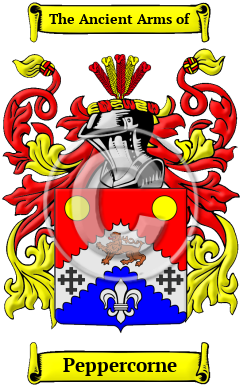 The surname Peppercorne was first found in Huntingdonshire where they held a family seat as Lords of the Manor. The Saxon influence of English history diminished after the Battle of Hastings in 1066. The language of the courts was French for the next three centuries and the Norman ambience prevailed. But Saxon surnames survived and the family name was first referenced in the 12th century when they held estates in that shire.
