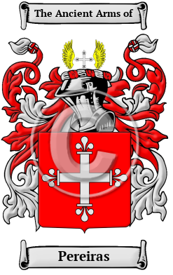 The surname Pereiras was first found in Northern Portugal near the Spanish border. The ancestors of the bearers of this name are thought to descend from Don Mendo "irmao" of Desiderio, King of the Lombards. After a great storm at sea, five of his knights arrived at a port in Galicia, Spain in 740. One of the earliest records of the surname is of Don Alvaro Pires de Castro, who, in 1177 was given lands in Palmeira in the province of Entre Douro by King Sancho I.