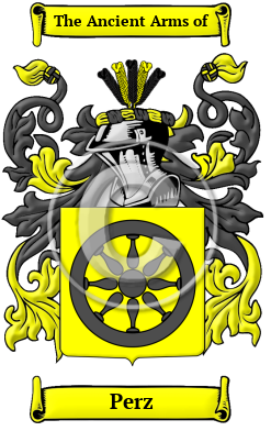 The surname Perz was first found in Holland, where the name became noted for its many branches in the region, each house acquiring a status and influence which was envied by the princes of the region. The name was first recorded in Gelderland, (Guelders) an ancient province surrounding the town of Gelder. To the south of Friesland this province was originally in two parts north and south of the Rhine. In addition, the province is sub-divided into four towns, or quarters, Nijmegan, Arnhem, Zutphen and Roermond, each having unique rights and customs. Apeldoorn is a city of note. In their later history the surname became a power unto themselves and were elevated to the ranks of nobility as they grew into this most influential family.