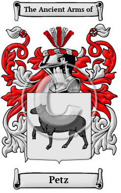 Germany Poland Early Origins of the Petz familyThe surname Petz was first found in Bavaria, where the name Betz.was anciently associated with the tribal conflicts of the area. They declared allegiances to many nobles and princes of early history, lending their influence in struggles for power and status within the region. They branched into many houses, and their contributions were sought by many leaders in their search for power. Early History of the Petz familyThis web page shows only a small excerpt of our Petz research. Another 98 words (7 lines of text) covering the years 1603, 1677, 1733 and 1811 are included under the topic Early Petz History in all our PDF Extended History products and printed products wherever possible. Petz Spelling VariationsSpelling variations of this family name include: Betz, Betze, Betzer, Betzen, Betzenstein, Betzhold, Betzler, Petz, Beitz and many more. Early Notables of the Petz family- Christian Petzold (1677-1733), a German composer and organist