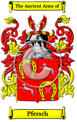 The surname Pfersch was first found in Swabia, where the Pfersch family became a prominent contributor to the development of the district from ancient times. Always prominent in social affairs, the family became an integral part of that turbulent region as it emerged to form alliances with other families within the Feudal System and the nation. The young Pfersch family was instrumental during this formative period, playing a major role in the early history of the region and contributing greatly to the development of medieval Swabian society.