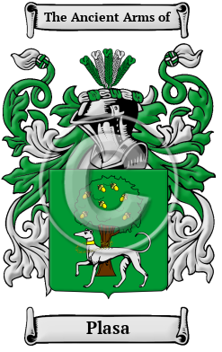 The family name Plasa is of Spanish descent, and is classified as being of habitation origin. In this particular instance, the surname Plasa was taken from one of the many places named Plaza in the Basque Country. The surname Plasa is derived from the Basque term "latz" meaning "rough land" and has the prosthetic "P" added to the front. Thus, the place named Plaza was probably founded on land of the same description.