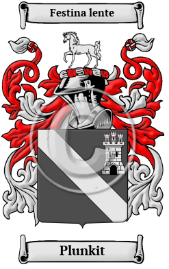 | Plunkit History, Family Crest & Coats of Arms Etymology of PlunkitWhat does the name Plunkit mean? The Irish already had a system for creating hereditary surnames established when the followers of Strongbow settled in eastern Ireland. Although there was relatively little friction between the two systems because they operated according to very similar principles, the Strongbownians frequently used local surnames. In Ireland, local surnames were almost unheard of, but in England they were probably the most common form of hereditary surname. Local surnames, such as Plunkit, were taken from the name of a place or a geographical feature where the person lived, held land, or was born. The surname Plunkit is derived from living in the settlement of Plouquenet in Ille-et-Vilaine in France. The surname Plunkit belongs to the large category of Anglo-Norman habitation names, which are derived from pre-existing names for towns, villages, parishes, or farmsteads. Some sources indicated that the surname Plunkit is a corruption of the Old French word blanchet, which means white. The Gaelic form of the surname Plunkit is Pluincéid. Early Origins of the Plunkit familyThe surname Plunkit was first found in County Louth (Irish: Lú) the smallest county in Ireland, located on the East coast, in the Province of Leinster, where they were granted lands when they accompanied Strongbow, Earl of Pembroke, in the invasion of Ireland. "Little of certainty is to be gathered concerning this name before its appearance in Ireland. So early, however, as the 11th century, we find John Plukenet seated at Beaulieu, co. Meath: and from him springs the distinguished Irish families of the name, ennobled under the titles of Fingall Dunsany, and Louth." 1 "A nephew of Lord Plugenet [in England] founded the family still existing in Ireland, though their pedigree declares that they are of Danish origin, and were seated at Bewley (Beaulieu) in co. Louth as early as the eleventh century. " 2 Richard Plunkett (c.1340-1393) was an eminent Irish jurist and statesman who held the offices of Lord Chief Justice of Ireland and Lord Chancellor of Ireland. His descendants held the titles Baron Dunsany, Baron Killeen and Earl of Fingall. "The younger branch was the more distinguished of the two. 'These 'Plunkets in Ireland,' says Camden, ' have been very eminent ever since Christopher Plunket (a person of great valour and wisdom who was deputy to Richard Duke of York, Viceroy in Henry VI. time) was raised to the dignity of Baron of Killin, which came to him by his wife, as heir to the family of the Cusacks.' Sir Christopher was Sheriff of Meath prior to 1442, and had married the only child of Sir Lucas de Cusack, Lord of Killeen, Dunsany, and Gerardstown in that county. All his three sons founded families. The eldest was the ancestor of the Earls of Fingall ; the second, Sir Christopher, was the first Lord Dunsany ; and the third, Sir Thomas, had to wife the heiress of Rathmore, which remained the home of his descendants. His son Sir Alexander 'a person of great account,' was appointed Chancellor of Ireland in 1492." 2 Early History of the Plunkit familyThis web page shows only a small excerpt of our Plunkit research. Another 114 words (8 lines of text) covering the years 1182, 1410, 1440, 1445, 1461, 1463, 1492, 1503, 1519, 1555, 1602, 1629, 1644, 1649, 1668, 1680, 1681 and 1920 are included under the topic Early Plunkit History in all our PDF Extended History products and printed products wherever possible. Plunkit Spelling VariationsNames were simply spelled as they sounded by medieval scribes and church officials. Therefore, during the lifetime of a single person, his name was often spelt in many different ways, explaining the many spelling variations encountered while researching the name Plunkit. Some of these variations included: Plunkett, Plunket, Plunkitt, Plunkit, Plunked, Plunkedd, Plunkidd and many more. Early Notables of the Plunkit familySir Christopher Plunkett, 1st Baron of Dunsany (1410-1463); Sir Thomas Plunket (c.1440-1519), a wealthy Irish landowner, lawyer and jurist, Chief Baron of the Irish Exchequer and Chief Justice of the Irish Common Pleas; Alexander Plunket (died 1503), appointed Lord Chancellor of Ireland by King Henry VII of England in 1492; Oliver Plunkett, 1st Baron Louth (d. c. 1555), an Irish peer; and Christopher Plunkett, 2nd Earl of Fingall (died 1649).