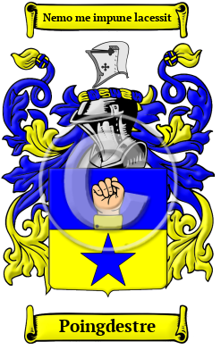 England Etymology of PoingdestreWhat does the name Poingdestre mean? The Poingdestre family name is a legacy Britain's Norman past. It comes from the Old French "poing destre," meaning "right fist;" and as such is thought to have originally been some kind of nickname. 1 2 However, another source disagrees with this generally accepted origin. "This name does not signify ' the right hand,' as might easily be imagined, but is an old Norman name, signifying Spur the Steed, and analogous to Hotspur. It comes from two old words, which Wace often uses in the Roman de Rou; the first meaning ' to spur,'from the Latin pungo; the second, 'a steed or courser,' in French destrier, Ital. destriere." 3 Early Origins of the Poingdestre familyThe surname Poingdestre was first found in on the Island of Jersey where the earliest record of the names was of Geoffrey and Raoul Poingdestre as land owners in Jersey in 1250. Looking back further, the Pipe Rolls of the Exchequer of Normandy for the Reign of Henry ll, 1180 and 1184 list Ricardus Poingdestre, in the Bayeux District of the Bessin in Normandy (Lower Normandy) in 1180 and in 1195. Another reference confirms this entry but has modernized the spelling to Richard Poindestre and confirmed the year 1180. 4 Early History of the Poingdestre familyThis web page shows only a small excerpt of our Poingdestre research. Another 44 words (3 lines of text) covering the years 1609, 1636 and 1691 are included under the topic Early Poingdestre History in all our PDF Extended History products and printed products wherever possible. Poingdestre Spelling VariationsAnglo-Norman names tend to be marked by an enormous number of spelling variations. This is largely due to the fact that Old and Middle English lacked any spelling rules when Norman French was introduced in the 11th century. The languages of the English courts at that time were French and Latin. These various languages mixed quite freely in the evolving social milieu. The final element of this mix is that medieval scribes spelled words according to their sounds rather than any definite rules, so a name was often spelled in as many different ways as the number of documents it appeared in. The name was spelled Poindexter, Poingdester, Poingdestre, Puddister and many more. Early Notables of the Poingdestre family- Jean Poingdestre (1609-1691), a Jersey native who was a supporter of the Royalists in the English Civil War and later became Lieutenant Bailiff of Jersey. He was a writer on the laws and history of Je...