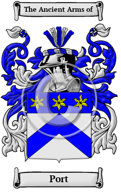 England France Etymology of PortWhat does the name Port mean? The Port surname comes from the Middle/Old English word "port," meaning "a harbor," or "market town" As such, the surname is thought to have been a topographic name for someone who lived near a port, or a market town. Early Origins of the Port familyThe surname Port was first found in Hampshire and Dorset. The family claim descent from Hugo de Port who came to England at the Norman Conquest and held fifty-five lordships in those counties. 1 A Hubert de Port was also a tenant in capite in Hampshire as listed in the Domesday Book of 1086. 2 Adam de Port or Porz (died 1213) was an English Baron, eldest son of John de Port and Maud, his wife, grandson of Henry de Port, lord of Basing in Hampshire. Adam reported to the exchequer in 1164, his father John being then alive, for about twenty-four knights' fees in Herefordshire. In 1172 accused of treason and of plotting the death of the king; he was summoned to appear before the king's court, disobeyed the summons, fled from England, and was outlawed. He seems to have returned to England at some point as he was fined three hundred marks for trespassing in the royal forests in 1176. He is said to have served the king in Normandy in 1194. 3 From these early records, the family quickly scattered. "The church [of Upper Areley, Staffordshire], which is situated on an eminence commanding a fine prospect, was first built by Henry de Port, in the reign of Henry I., and was rebuilt in the time of Edward I." 4 Another branch of the family was found at early times in Derbyshire. "The manor belonged to Welbeck Abbey, Nottinghamshire, in the reign of Stephen. It was given by Henry VIII., in 1540, to Sir John Port, Knt., one of the justices of the king's bench." 4 In Devon, "Old Port, a very remarkable fortification of unknown antiquity, on the Erme, gave name to the De la Ports, and is suggested by Mr. R. J. King as of older date than Saxon times. ' It may have been the work of the Romans before their withdrawal .... or it may have been raised by some British King of Damnonia, working and building under Roman traditions, for defence against the Saxon host.' " 5 Early History of the Port familyThis web page shows only a small excerpt of our Port research. Another 146 words (10 lines of text) covering the years 1480, 1486, 1517, 1522, 1527, 1541, 1557, 1606, 1617 and 1679 are included under the topic Early Port History in all our PDF Extended History products and printed products wherever possible. Port Spelling VariationsSpelling variations of this family name include: Port, Le Port, De la Port, Delaport, Porte, De Porte, Deport, Deporte and many more. Early Notables of the Port family- Sir John Port (c. 1480-1541), English jurist, born at Chester, where his ancestors had been merchants for some generations; his father, Henry, was mayor of Chester in 1486. In 1517 he was 'clerk of ex...