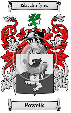 | Powells History, Family Crest & Coats of Arms Etymology of PowellsWhat does the name Powells mean? The Welsh surname Powells comes from the personal name Hoel or Howell, which were both derived from the Old Welsh name Houel. The surname Powells features the distinctive Welsh patronymic prefix "ap-". The original form of the name was ap-Hoel or ap-Howell, but the prefixes have been assimilated into the surname over the course of time. Early Origins of the Powells familyThe surname Powells was first found in Breconshire (Welsh: Sir Frycheiniog), a traditional county in southern Wales, which takes its name from the Welsh kingdom of Brycheiniog (5th-10th centuries), where the name "are descended from Philip ap Howell, whose pedigree is traced to Edwin ap Grono, Lord of Tegaingl, founder of the XIII noble tribe of North Wales and Powys." 1 However other records claim the name came from the Welsh King Hywel Dda"the Good" ap Cadell (c.880- c.950), son of Cadell ap Rhodri, in turn a son of Rhodri the Great. Early History of the Powells familyThis web page shows only a small excerpt of our Powells research. Another 201 words (14 lines of text) covering the years 1600, 1608, 1624, 1628, 1630, 1632, 1637, 1641, 1653, 1660, 1673, 1678, 1680, 1688, 1689, 1692, 1696, 1721, 1750, 1795, 1798, 1803 and 1834 are included under the topic Early Powells History in all our PDF Extended History products and printed products wherever possible. Powells Spelling VariationsAlthough there are not an extremely large number Welsh surnames, there are an inordinately large number of spelling variations of those surnames. This variety of spellings began almost immediately after the acceptance of surnames within Welsh society. As time progressed, these old Brythonic names were eventually were recorded in English. This process was problematic in that many of the highly inflected sounds of the native language of Wales could not be properly captured in English. Some families, however, did decide to modify their own names to indicate a branch loyalty within the family, a religious adherence, or even a patriotic affiliation. The name Powells has seen various spelling variations: Powell, Powel and others. Early Notables of the Powells familyMore information is included under the topic Early Powells Notables in all our PDF Extended History products and printed products wherever possible. Migration of the Powells family to IrelandSome of the Powells family moved to Ireland, but this topic is not covered in this excerpt. More information about their life in Ireland is included in all our PDF Extended History products and printed products wherever possible.