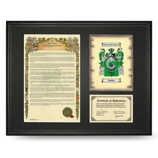 Framed Surname History and Coat of Arms - Black