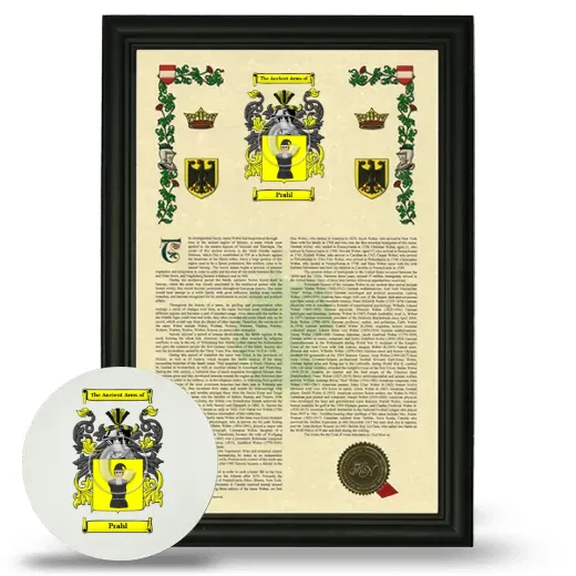 • Our most popular product, the Armorial, in a wooden Black Frame with an 8" Round Mouse Pad