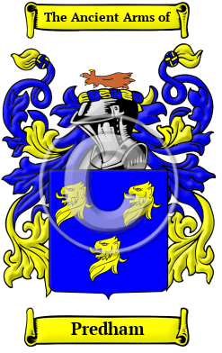The surname Predham was first found in Wiltshire, and Surrey. where Gilbert Prodhome or Prudume was on record in the Pipe Rolls in the 12th century. The name Roger Prodomme or Prodhomme was recorded in the Feet of Fines of Essex in 1284, and in 1326. The place named Pridhamsleigh, in Devon is named for John Prodhomme, who lived there in 1281. Like many Norman names, Predham made its way to Scotland, where the first record of the name was of Willelmus Prodomme of Scotia, a mercator who had safe conduct to England in 1373.