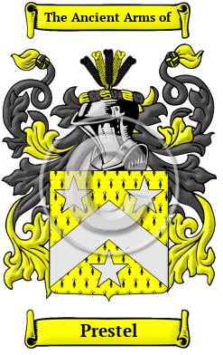 England Early Origins and Etymology of PrestelThe surname Prestel was first found in Lancashire at Preesall, with Hackensall, a township, in the chapelry of Stalmine, parish of Lancaster, union of Garstang, hundred of Amounderness. " 'Pressonede' in the Domesday Survey was estimated at six carucates of land: the tithes were granted by Roger de Poictou to the priory of Lancaster." 1 Hence, conjecturally, the surname is descended from the tenant of the lands of Preesall, held by a steward of the King who was recorded in the Domesday Book census of 1086. Literally, the place name means "brushwood headland" from the Old Welsh word "pres" + the Old Viking word "hofuth" or the Old English word "heafod." 2 Preshaw is a locality near Upham on the slopes of the South Downs. Early History of the Prestel familyThis web page shows only a small excerpt of our Prestel research. Another 61 words (4 lines of text) are included under the topic Early Prestel History in all our PDF Extended History products and printed products wherever possible. Prestel Spelling VariationsSpelling variations of this family name include: Preesall, Presall, Prestall, Presow, Presawe, Prisoe, Priseye, Presoo, Presal, Pristow, Pristowe, Prestoe and many more. Early Notables of the Prestel familyMore information is included under the topic Early Prestel Notables in all our PDF Extended History products and printed products wherever possible.