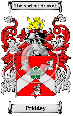 | Priddey History, Family Crest & Coats of Arms Etymology of PriddeyWhat does the name Priddey mean? It is thought that the Priddey surname may be one of the Welsh "patronymics," or names created from the father's name. In this case the name was derived from the Welsh "ap Ridel," or "son of Ridel," an ancient Welsh name. 1 Early Origins and Etymology of PriddeyThe surname Priddey was first found in Somerset, at Priddy, a parish, in the union of Wells, hundred of Wells-Forum in Somerset. 2 3 4 The parish dates back to at least 1182 when it was first listed as Pridia and probably meant "earth house" from the Celtic word "prith" + "ti". 5 Steeped in ancient history, Priddy Circles, a Stone circle or Henge monument are nearby. Surname spellings evolved through medieval times from Latin, through French and finally to English. One of the first entries for the family was found in the year 1320 when John Pridel held estates in Somerset bordering Wales. Later, William Pridy was listed in the Subsidy Rolls for Worcestershire in 1327 and much later, John Pridee was found in Devon in 1642. 1 Early History of the Priddey familyThis web page shows only a small excerpt of our Priddey research. Another 74 words (5 lines of text) covering the years 1281, 1641, 1792 and 1805 are included under the topic Early Priddey History in all our PDF Extended History products and printed products wherever possible. Priddey Spelling VariationsSpelling variations of this family name include: Pritwell, Prittle, Priddle, Pridell, Pritell, Priddell, Pridle, Prittle, Prittell, Pridwell, Priddy, Pridley, Pridie, Pridy, Pribble, Preddle, Prebble and many more. Early Notables of the Priddey familyMore information is included under the topic Early Priddey Notables in all our PDF Extended History products and printed products wherever possible. Migration of the Priddey familySome of the first settlers of this family name or some of its variants were: William Pridley settled in Baltimore in 1673; Thomas Priddle, who came to Virginia in 1737; Thomas Priddel, who settled in Philadelphia in 1843; as well as John Priddle and Mark Priddle, who were both on record in the Ontario census of 1871..