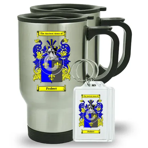 Pair of Travel Mugs and pair of Keychains