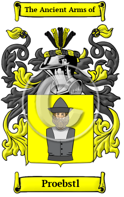 The distinguished surname Proebstl is German in origin. It is derived from the Low German "pravest" meaning "provost," and is used to designate someone in charge.