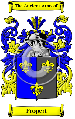 | Propert History, Family Crest & Coats of Arms Etymology of PropertWhat does the name Propert mean? The distinguished surname Propert is of Welsh origin, and is derived from the Welsh patronymic name "Ap-Robert," which means "a son of Robert." 1 2 3 The distinctive Welsh patronymic prefix "ab" or "ap," means "son of," but the prefix has been assimilated into the surname over the course of time. Early Origins of the Propert familyThe surname Propert was first found in at Pant Glas near the village of Trelleck, county of Monmouthshire (Welsh: Sir Fynwy), where Thomas ap Robert (d. 1536), son of Robert ap Jenkins (d. 1509), gentleman usher of King Henry VII was found. Thomas' son Walter was the first to bear the Propert surname. Another early reference finds the family name at Chirk, on the Welsh border. Early History of the Propert familyThis web page shows only a small excerpt of our Propert research. Another 175 words (12 lines of text) covering the years 1455, 1487, 1570, 1617, 1629, 1632, 1645, 1646, 1661, 1663, 1664, 1677, 1695, 1719, 1790, 1814, 1815, 1821 and 1870 are included under the topic Early Propert History in all our PDF Extended History products and printed products wherever possible. Propert Spelling VariationsSpelling variations of this family name include: Probert, Probbert, Propert, Proput, Probutt, Probat, Probart, Proppert, Rotpert, Rotperd, Brobert, Bropert, Broppert, Probat and many more. Early Notables of the Propert familySir George Probert (c.1617-1677), Welsh politician from Pant Glas, Raglan, Monmouthshire, Member of the Parliament of England for Monmouth Boroughs from 1661 to 1677. His son, Henry Probert (1645-1719?) was a Welsh anti-Catholic activist and politician. He matriculated at Jesus College, Oxford in 1663, and entered the... Another 46 words (3 lines of text) are included under the topic Early Propert Notables in all our PDF Extended History products and printed products wherever possible. Migration of the Propert family to IrelandSome of the Propert family moved to Ireland, but this topic is not covered in this excerpt. Another 50 words (4 lines of text) about their life in Ireland is included in all our PDF Extended History products and printed products wherever possible.