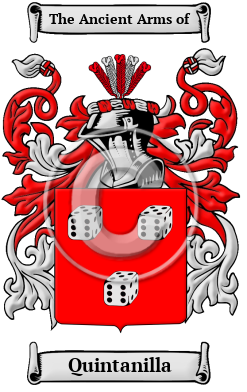 Italy Spain Early Origins of the Quintanilla familyThe surname Quintanilla was first found in Messina (Sicilian: Missina; Latin: Messana), capital of the Italian province of Messina. Its history begins in 397 B.C. After a checkered history the Saracens took it in 831, and the Normans in 1061. It was host to the crusaders in 1190. Garibaldi landed in 1860 and it was the last city to be made a part of united Italy. In those ancient times only persons of rank, the podesta, clergy, city officials, army officers, artists, landowners were entered into the records. To be recorded at this time, at the beginning of recorded history, was of itself a great distinction and indicative of noble ancestry. The family were originally a noble family from Spain at Duegnas. The heads of this family in Spain in 1660 were the Marques de Quintana del Marco of Galicia and the Marques de Quintana de las Torres, a Caballero of Calatrava. Early History of the Quintanilla familyThis web page shows only a small excerpt of our Quintanilla research. Another 103 words (7 lines of text) are included under the topic Early Quintanilla History in all our PDF Extended History products and printed products wherever possible. Quintanilla Spelling VariationsSpelling variations of this family name include: Quintana, Quintano, Quintanna, Quintanni, Quinta, Quinto, De Quinta and many more. Early Notables of the Quintanilla familyMore information is included under the topic Early Quintanilla Notables in all our PDF Extended History products and printed products wherever possible. Quintanilla Rankingthe United States, the name Quintanilla is the 2,550th most popular surname with an estimated 12,435 people with that name. 1