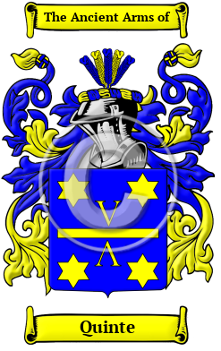 The surname Quinte was first found in the city of Rome, as early as the year 35 A.D. with Marcus Fabius Quintilianus, a rhetorician famous for his 12-book rhetoric.