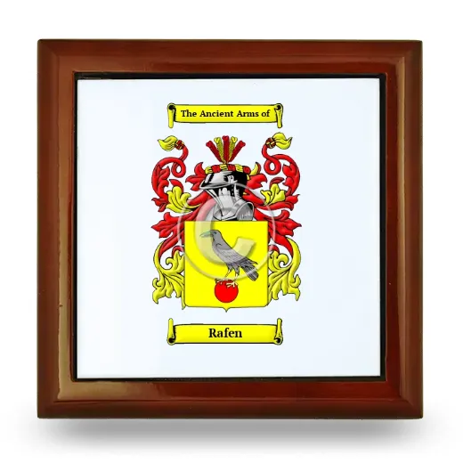 Made from the finest mahogany, this box has a brilliant lacquered cherry finish. Inside, you'll find cream-colored velvet. The hinged lid makes opening and closing this jewelry box easy. The Coat of Arms is heat-pressed onto a ceramic tile on the top of the box.