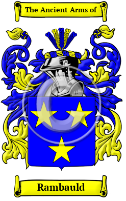 | Rambauld History, Family Crest & Coats of Arms Early Origins of the Rambauld familyThe surname Rambauld was first found in Brittany, originally Armorica in ancient times, where the family has been a prominent family for centuries, and held a family seat with lands and manor. The family were well established in the region of Dol and several members of the family distinguished themselves through their contributions toward the community in which they lived and were rewarded with lands, titles and letters patent confirming their nobility. Roger of Rames, a Norman Baron, took his name from the castle of Rames in Bolbec, near Havre in Normandy joined William the Conqueror at Hastings and was granted considerable estates in Essex and Suffolk in England. Saint Rimbert (or Rembert) (830-888), born in Flanders, was Archbishop of Bremen-Hamburg from 865-888. Early History of the Rambauld familyThis web page shows only a small excerpt of our Rambauld research. Another 83 words (6 lines of text) covering the years 1810 and 1849 are included under the topic Early Rambauld History in all our PDF Extended History products and printed products wherever possible. Rambauld Spelling VariationsSpelling variations of this family name include: Raimbaud, Raimbaudière, Rambaudière, Raimbault, Rimbaud, Rambaud, Rambault, Rambauld, Rimbault, Raimbert, Rimbert, Rambert, Raimbourg, Rambourg, Rimbourg, Rambevaulx, Reimbault, Reimbaut, Reimbaud, Reimbert, Reimbold, Reinbold, Rembaud, Rembert, Rames, Raimes, Raime, Raimbaugh, Rainbow, Rambow and many more. Early Notables of the Rambauld familyMore information is included under the topic Early Rambauld Notables in all our PDF Extended History products and printed products wherever possible. Migration of the Rambauld familySome of the first settlers of this family name or some of its variants were: Claude Raimbault, who arrived in Montreal in 1670; Jeanne Raimbault, who arrived in Quebec in 1668; and Jeanne Simblin Raimbault, who came to Sorel, Que. sometime between 1668 and 1681..