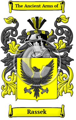 The surname Rassek was first found in Pomerania, where the name could be considered to have made a great early contribution to the feudal society which became the backbone of modern Europe. Chronicles first mention Johann Rasche of Stralsund, Pomerania, in 1277, Ruel Rascher of Frankfurt in 1300, and Cunrath Rasch of Allgae, Pomerania in 1361. The name became prominent in local affairs and branched into many houses which played important roles in the tribal and national conflicts at a time when groups sought power and status in an ever changing territorial profile.