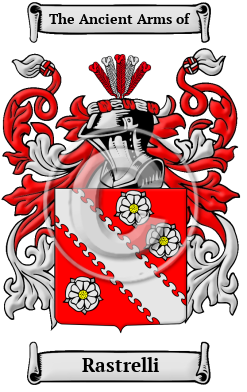 The surname Rastrelli was first found in Padua (Italian: Padova, Latin: Patavium, Venetian: Padoa), on the Bacchiglione River, capital of the province of Padua. In 1175, the citizens elected the D'Este family as podesta but in 1275 Frederick II took over. The powerful familes of D'Este, Camposampiero and Da Romano were the large influences. The city is rich in art, museums and galleries. Many churches exhibit works of the masters. In those ancient times only persons of rank, the podesta, clergy, city officials, army officers, artists, landowners were entered into the records. To be recorded at this time, at the beginning of recorded history, was of itself a great distinction and indicative of noble ancestry.