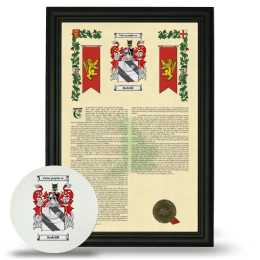 • Our most popular product, the Armorial, in a wooden Black Frame with an 8" Round Mouse Pad