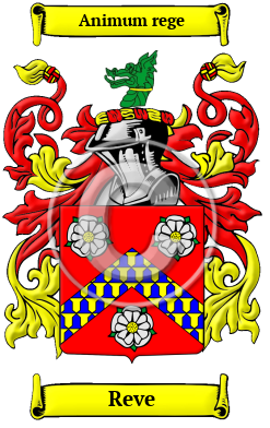 | Reve History, Family Crest & Coats of Arms Etymology of ReveWhat does the name Reve mean? The founding heritage of the Reve family is in the Anglo-Saxon culture that once dominated in Britain. The name Reve comes from when one of the family worked as a local representative of a lord, a reeve, sheriff, steward or bailiff. 1 2 The surname Reve was originally derived from the Old English (ge)refa which referred to a representative. 3 The name is "an official appointed by the lord of the manor to supervise his tenants' work." 4 Early Origins of the Reve familyThe surname Reve was first found in Leicestershire where Walter and James le Reve were listed in 1220. John atte Reuese was listed in the Subsidy Rolls of Worcestershire in 1327. The plural form of the name which is actually most common today dates back to 1332 when Richard del Reves was listed in the Subsidy Rolls for Lancashire in 1332. 3 The Hundredorum Rolls of 1273 included: Sampson le Reve, Suffolk; and John le Reve, Cambridgeshire. 5 In Somerset, William le Reve, John le Reveson, and William le Reveson were listed there 1 Edward III (during the first year of the reign of King Edward III.) 6 Early History of the Reve familyThis web page shows only a small excerpt of our Reve research. Another 124 words (9 lines of text) covering the years 1585, 1594, 1608, 1611, 1618, 1638, 1647, 1658, 1660, 1662, 1667, 1672, 1673, 1678, 1686, 1726, 1729, 1737, 1818, 1861, 1865 and 1900 are included under the topic Early Reve History in all our PDF Extended History products and printed products wherever possible. Reve Spelling VariationsThe first dictionaries that appeared in the last few hundred years did much to standardize the English language. Before that time, spelling variations in names were a common occurrence. The language was changing, incorporating pieces of other languages, and the spelling of names changed with it. Reve has been spelled many different ways, including Reeve, Reve, Reave, Reaves, Reeves and others. Early Notables of the Reve familyEdmund Reeve (1585-1647), English Justice of the Common Pleas, son of Christopher Reeve of Felthorpe, Norfolk; Edmund Reeve (died 1660), English divine, vicar of Hayes-cum-Norwood, Middlesex; Thomas Reeve (1594-1672), English Royalist divine, born at Langley, Norfolk, son of Thomas Reeve, a husbandman; John Reeve (1608-1658), an English plebeian prophet, believed the voice of God had instructed him to found a Third Commission in preparation for the last days of... Another 69 words (5 lines of text) are included under the topic Early Reve Notables in all our PDF Extended History products and printed products wherever possible. Migration of the Reve family to IrelandSome of the Reve family moved to Ireland, but this topic is not covered in this excerpt. Another 196 words (14 lines of text) about their life in Ireland is included in all our PDF Extended History products and printed products wherever possible.