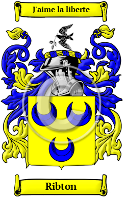 The surname Ribton was first found in Cumberland where they held a family seat as Lords of the Manor Ribton. The Saxon influence of English history diminished after the Battle of Hastings in 1066. The language of the courts was French for the next three centuries and the Norman ambience prevailed. But Saxon surnames survived and the family name was first referenced in the 13th century.