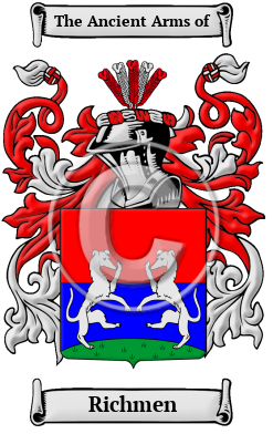 | Richmen History, Family Crest & Coats of Arms Etymology of RichmenWhat does the name Richmen mean? The Richmen family name first began to be used in the German state of Bavaria. After the 12th century, hereditary surnames were adopted according to fairly general rules, and names that were derived from locations became particularly common. The family name Richmen is a local surname. Originally denoting the proprietorship of an estate or influence within a village, the German preposition von, which means from or of, used with local names, was taken as a mark of aristocracy. The surname Richmen was given to someone who lived in Bavaria, where the Richmen family achieved distinction for its contribution to the region's medieval society. This surname was a nickname surname, and derived from the German words, reich, which means rich, and mann, which means man. Thus, the bearer of this name was known for his material wealth, or perhaps because he behaved in a princely or regal manner. Early Origins of the Richmen familyThe surname Richmen was first found in Bavaria, where the name was anciently associated with the tribal conflicts of the area. They declared allegiances to many nobles and princes of early history, lending their influence in struggles for power and status within the region. They branched into many houses, and their contributions were sought by many leaders in their search for power. Chronicles first mention Hatnel Richman in 1380, and one Richmannus of Bremen in 1382. Early History of the Richmen familyThis web page shows only a small excerpt of our Richmen research. Another 176 words (13 lines of text) covering the years 1642, 1702, 1703, 1715, 1737, 1744, 1777, 1849, 1882 and 1903 are included under the topic Early Richmen History in all our PDF Extended History products and printed products wherever possible. Richmen Spelling VariationsIn the medieval era, many different cultural groups lived in the German states. There are thus many regional variations of German surnames from that era. Westphalians spoke Low German, which is similar to modern Dutch. Many German names carry suffixes that identify where they came from. Others have phrases attached that identify something about the original bearer. Other variations in German names resulted from the fact that medieval scribes worked without the aid of any spelling rules. The spelling variations of the name Richmen include Reichmann, Reichman, Reichmen, Richmann, Richman, Richmen, Reichmanner, Reichmaenner, Richmanner, Richmaenner, Rickman, Rickmen, Reychman, Reychmann and many more. Early Notables of the Richmen familyTheodor Reichmann (1849-1903), a German baritone from Rostock who joined the Vienna Opera in 1882, noted for his roles in Wagnerian Opera in Bayreuth; and Captian... Another 26 words (2 lines of text) are included under the topic Early Richmen Notables in all our PDF Extended History products and printed products wherever possible. Migration of the Richmen familyThe great European flow of migration to North America, which began in the middle of the 17th century and continued into the 20th century, was particularly attractive to those from Bavaria who wished to escape either poverty or religious persecution. For many Bavarian tenant farmers, the chance to own their own land was a major incentive. So the widespread colonization of the United States began in 1650, when many immigrants from Germany settled in pockets in Pennsylvania, Texas, New York, Illinois, and California. In Canada, German settlement centered in Ontario and the prairie provinces. Among those of this surname listed in various historical records were: Anne Reichman, who sailed to England and/or America in 1709 with her children. Among the many other immigrants to follow these first settlers were: Hans Richman, who sailed to Philadelphia in 1741.