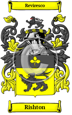 England Early Origins of the Rishton familyThe surname Rishton was first found in Lancashire at Rishton, a township, in the parish and union of Blackburn, Lower division of the hundred of Blackburn. "Henry, grandson of Henry de Blackburn, took the name of Rishton or Rushton." 1 There are also villages name Rushton in Cheshire, Northamptonshire and Staffordshire. The latter two date back to the Domesday Book of 1086 where they were listed as Risetone. 2 "The Risctún of a charter, A.D. 854, by Æþelwulf, king of the West Saxons, refers to Ruishton, Somerset." 3 Ritton Castle was located in Snailbeach, Shropshire, but is now listed as one of the deserted villages and lost places. We do know that is was a Hill Fort in Worthen with Shelve, to west of the Stiperstones Ridge, about 1 hectare in area. Later in Northumberland, Robert de Riston was listed in the Assize Rolls for 1203. Later again, John de Russheton was listed at Crowland, Lincolnshire in 1340 and John Russheton was listed in the Feet of Fines for Warwickshire (1433-1434.) 4 Early History of the Rishton familyThis web page shows only a small excerpt of our Rishton research. Another 133 words (10 lines of text) covering the years 1200, 1403, 1407, 1413, 1550, 1578, 1581, 1584, 1585, 1586, 1602, 1647, 1662, 1664 and 1668 are included under the topic Early Rishton History in all our PDF Extended History products and printed products wherever possible. Rishton Spelling VariationsSpelling variations of this family name include: Rishton, Rischton, Rishtone, Richton and others. Early Notables of the Rishton family- Nicholas Rishton (died 1413), an English diplomatist, presumably a native of Rishton, Lancashire, and was, like others of his name, educated at New College, Oxford, where he was fellow in 1407. He was...