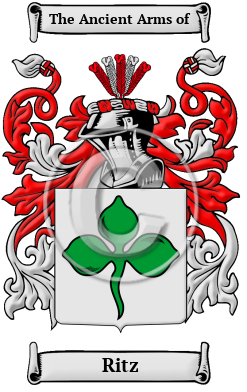 Germany Etymology of RitzWhat does the name Ritz mean? The name may be of patronymic origin, derived from the first name of the father. The name Ritz would indicate the "son of Ritz," a pet form of either Richard or Heinrich. The personal name Richard is derived from the Old High German word "rihhi" meaning power or rule, and "hardus" meaning hard, brave, or strong. Heinrich comes from either the Old High German word "hagan" meaning enclosure or hedged in place or "heim or haim" meaning home or settlement. The second part derived from "rihhi." The name may also be of locative origin, from a geographical feature near where the bearer once lived or held land. The toponym Ritz is derived from the Old High German word "hriot" meaning reeds, and thus the name would indicate "one who dwelled near a reedy or swampy place. Early Origins of the Ritz familyThe surname Ritz was first found in Bavaria, where the name was anciently associated with the tribal conflicts of the area. They declared allegiances to many nobles and princes of early history, lending their influence in struggles for power and status within the region. They branched into many houses, and their contributions were sought by many leaders in their search for power. The earliest record of the surname Ritz dates back to the thirteenth century when one Marquard Rizi was recorded in Lindau in 1276. In 1385 one Jakob Ritsch was living in Nydau and Joh. Ritzi was a choirmaster in Constance in 1423. Early History of the Ritz familyThis web page shows only a small excerpt of our Ritz research. Another 117 words (8 lines of text) covering the years 1604 and 1826 are included under the topic Early Ritz History in all our PDF Extended History products and printed products wherever possible. Ritz Spelling VariationsSpelling variations of this family name include: Ritz, Ritzel, Ritzenberg, Ritze, Ritzen, Ritzer and many more. Early Notables of the Ritz family- the Ritz family of Bavaria