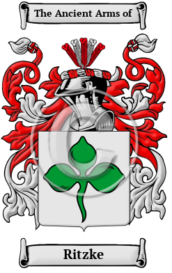 The surname Ritzke was first found in Bavaria, where the name was anciently associated with the tribal conflicts of the area. They declared allegiances to many nobles and princes of early history, lending their influence in struggles for power and status within the region. They branched into many houses, and their contributions were sought by many leaders in their search for power. The earliest record of the surname Ritzke dates back to the thirteenth century when one Marquard Rizi was recorded in Lindau in 1276. In 1385 one Jakob Ritsch was living in Nydau and Joh. Ritzi was a choirmaster in Constance in 1423.
